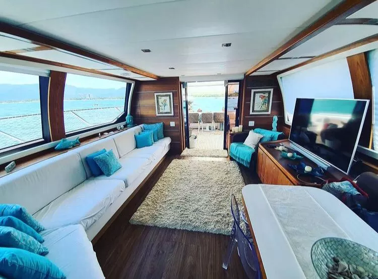 Navegue até Iporanga ou pelo canal de Bertioga em um barco completo e espaçoso, para você, sua família ou amigos. Tire fotos, tome sol e dê um mergulho para relaxar, ou então faça um churrasco a bordo ouvindo a música que gosta e tomando sua bebida preferida. Traga as carnes e bebidas que quiser consumir – há carvão e bebidas à venda na Marina. Oferecemos 12 garrafas de água mineral de 500 ml como cortesia e temos geladeira e micro-ondas para seu uso. Para experiências personalizadas como massagem, degustação de vinhos, experiências gastronômicas e outras, entre em contato para saber o valor extra. Início do passeio: 8h15 ou 13h Tempo de navegação considerado: 1 hora Barco com manutenção em dia e todos os itens de segurança, além de marinheiro experiente. INFORMAÇÕES IMPORTANTES: - Alguns roteiros dependem de condições de tempo e maré favoráveis, e o capitão do barco é quem vai verificar quais são possíveis no dia do passeio. - Pedimos que não se excedam no consumo de bebidas alcóolicas, a fim de evitar acidentes e problemas com a embarcação e com a Marina. - Antes do passeio é feita uma rápida vistoria sobre itens do barco (condições gerais de móveis, estofamentos, funcionamento de aparelhos, etc.) e as duas partes assinam. Ao final, os itens são repassados para verificar possíveis danos causados durante o passeio. - Os locatários podem utilizar o estacionamento, restaurante, banheiros e vestiários da Marina, apenas. O uso de outras instalações, como piscina, não é permitido. - Pedimos que atentem para as regras de prevenção à Covid-19 quando em ambiente com terceiros – temos álcool em gel a bordo e o marinheiro sempre estará usando máscara.